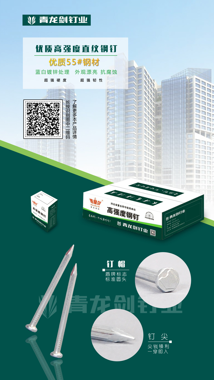 青龍劍釘業(yè)以“讓勞動創(chuàng)造更多價值!”為企業(yè)理念,致力于生產(chǎn)優(yōu)質(zhì)高效的釘類產(chǎn)品。