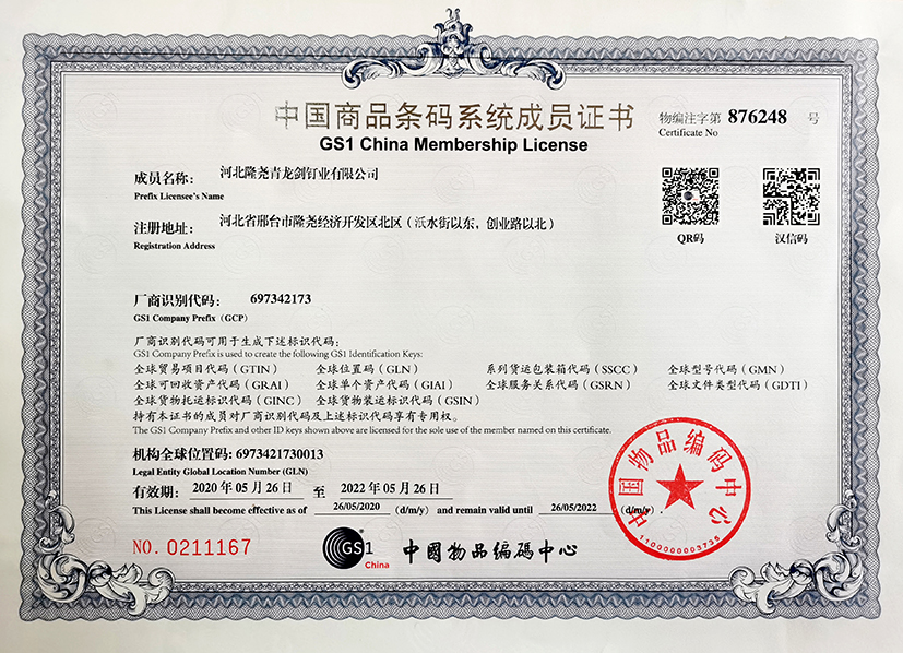青龍劍釘業(yè)有限公司已成為中國商品條碼系統(tǒng)成員,從2021年起青龍劍全系產品編入中國物品條碼系統(tǒng)。自此青龍劍產品實現(xiàn)了進商超、建材自選賣場、智能分揀倉庫等標準化便捷掃碼進出庫功能。